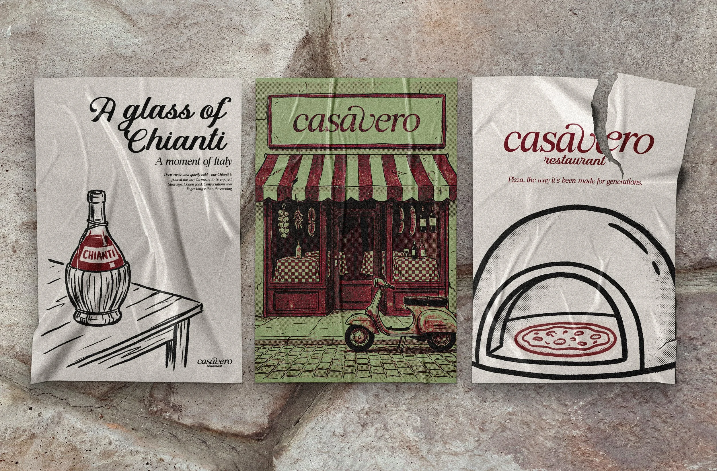 Casa Vero is an Italian restaurant brand rooted in authenticity, warmth, and modern elegance. The visual identity should balance old-world Italian tradition with a refined contemporary aesthetic, appealing to both locals and design-savvy diners seeking a genuine experience.
